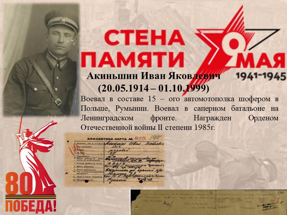 | Акция «Стена памяти» Акиньшин Иван Яковлевич | версия для печати |